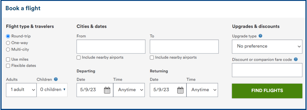 • Click on the “Find Flights” button.